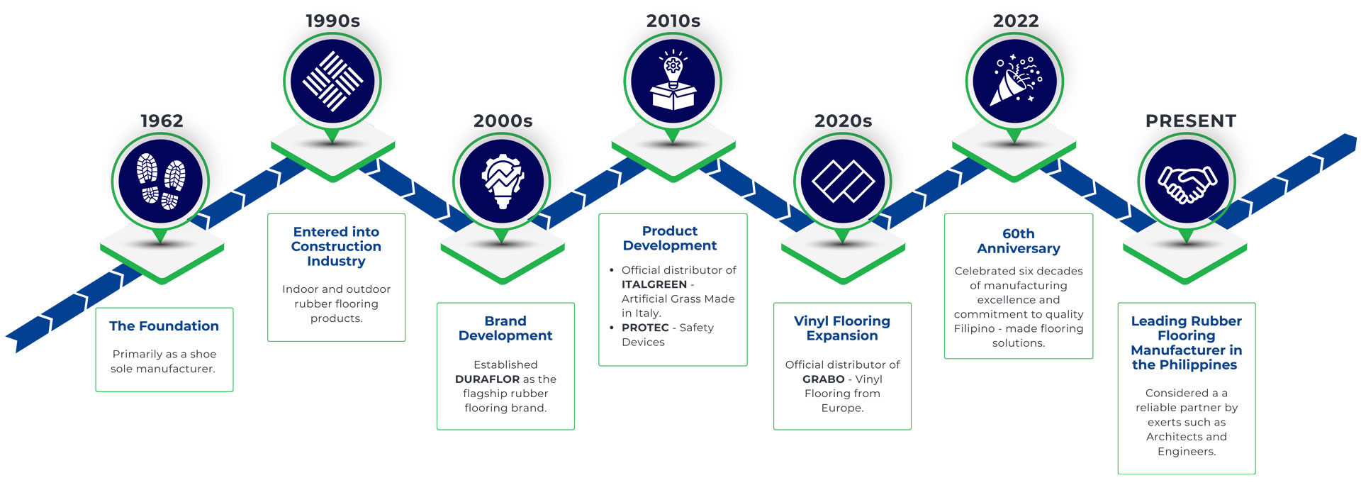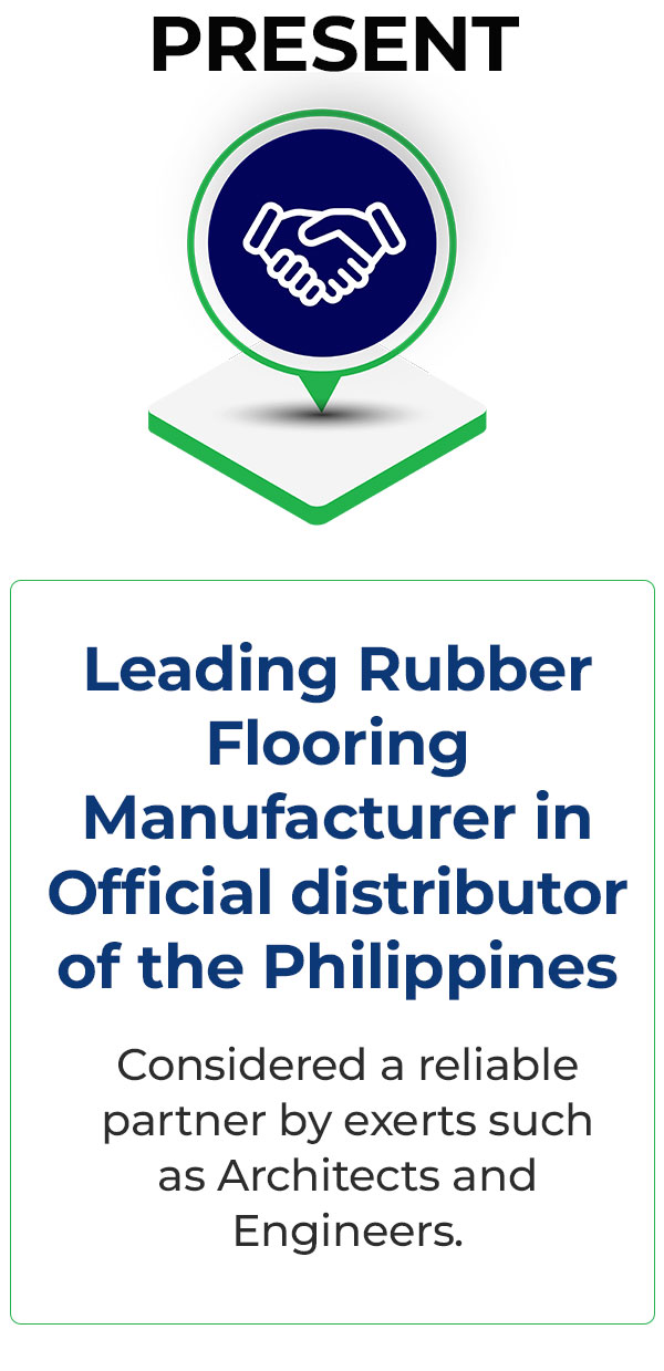 Today, the company is hailed as the leading rubber flooring manufacturer in the Philippines while expanding its Global partnership with world-trusted brands for other products such as Vinyl Floorings, Artificial Turfs and Floor Mats. The company aims to be recognized as a provider of aesthetic, safety and innovative floorings.